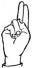 На ћирилици написано БРАНИСЛАВ ЈОВАНЧЕВИЋ састоји се из 19 слова [?]. Исписано ћириличном једноручном азбуком за глувонеме: